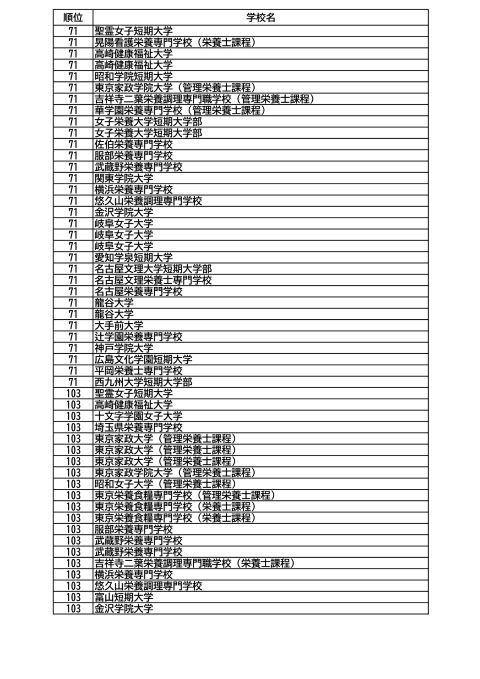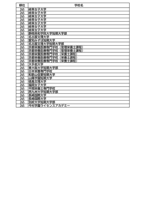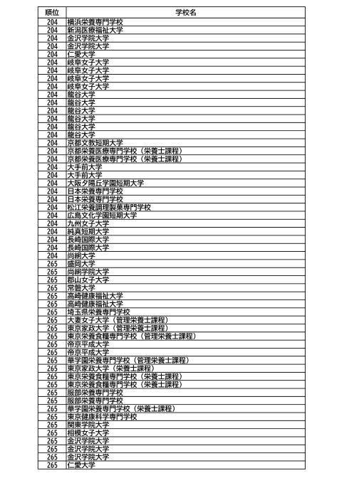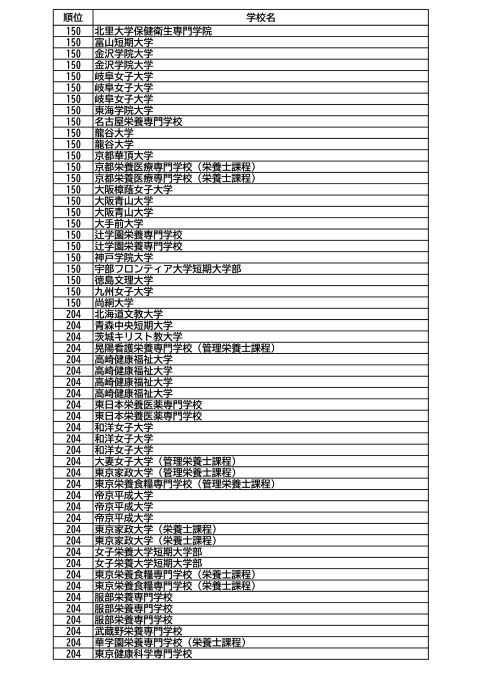 令和7年度 栄養士実力認定試験成績優良者 ※学校名・成績順・同順位(点)内は学校コード・受験番号順。上からZ順。(記号は外字です。)