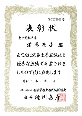 令和6年度、栄養士課程または管理栄養士課程を優秀な成績で卒業する学生を対象に、