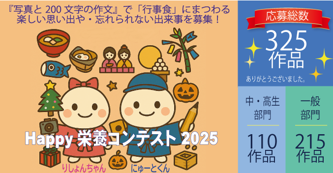 栄養士・管理栄養士を目指す学生が通う養成施設(大学・短大・専門学校)が加盟する全国栄養士養成施設協会が主催する「Happy栄養コンテスト」。