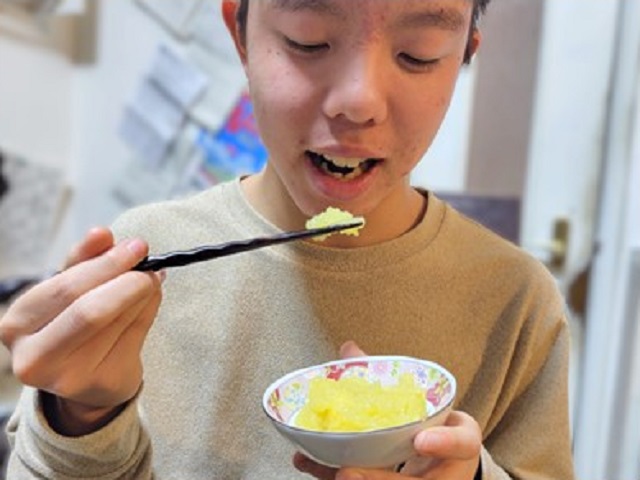 僕には双子の兄弟がいる。スポーツ推薦で高校が決まった僕は、必死に勉強しなくてはいけないという状況ではないが、彼は2月の高校入試に向けて、毎日塾に通い、帰宅してからも勉強するという、勉強漬けの日々だ。そんな兄弟のために、大好物の栗きんとんを作った。これを食べて、志望校合格に向けて頑張れ!