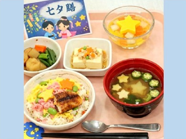 デイサービスの七夕膳の日、昼前から「今日はごちそうやで」と皆そわそわしていました。配膳されたのは、星形の具材の多い、色とりどりの小鉢。隣の席の方が「彦星も腹いっぱいやな」と笑わせ、思わず汁をこぼしそうに。短冊には願い事より「またこれ食べたい」と書いた人もいて、食堂は笑い声で満天でした。