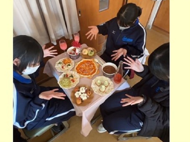 高校生最後のクリスマスは、三年間一緒に過ごしてきた友達と、ひとり一品ずつ料理を持ち寄ってクリスマスパーティーをしました。生活科の授業で学んだことを活かし、それぞれ工夫した料理が並びました。特別なことはしていないけれど、何気ない時間の中で、今だからこそ作れる大切な思い出ができて良かったです。